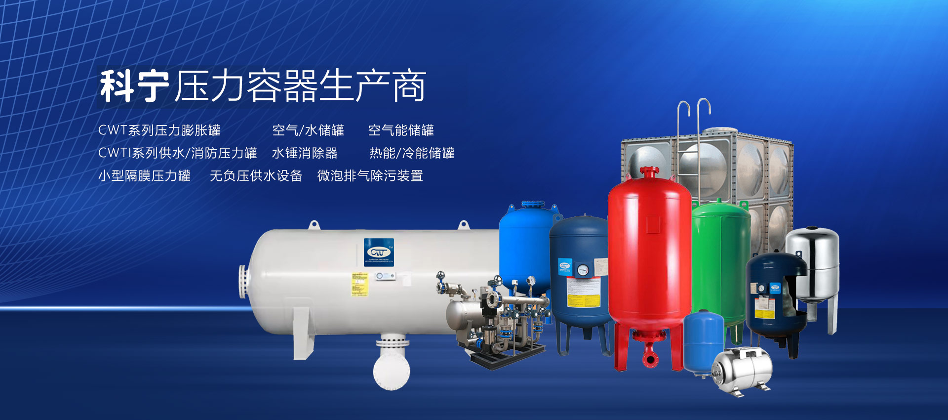 查看詳情 +壽光市科寧壓力容器(壽光)有限公司是專業(yè)從事壓力膨脹罐、空氣/水儲(chǔ)罐、空氣能儲(chǔ)罐、水錘罐、熱能/冷能儲(chǔ)罐、無(wú)負(fù)壓供水設(shè)備穩(wěn)流罐、耦合罐的研發(fā)、制造、加工、銷售、維修;經(jīng)營(yíng)國(guó)家允許范圍內(nèi)的貨物與技術(shù)的進(jìn)出口業(yè)務(wù)。材質(zhì)有碳鋼、不銹鋼、雙相鋼等。產(chǎn)品主要用于:恒壓變頻供水設(shè)備、無(wú)負(fù)壓供水設(shè)備、供暖系統(tǒng)、太陽(yáng)能、地暖、消防、空氣能、空調(diào)、大型供水系統(tǒng)(防水錘)。起到節(jié)能、穩(wěn)壓、防水錘、蓄能、環(huán)保等作用,延長(zhǎng)水泵和管道系統(tǒng)的使用壽命,確保供水系統(tǒng)穩(wěn)定運(yùn)行...